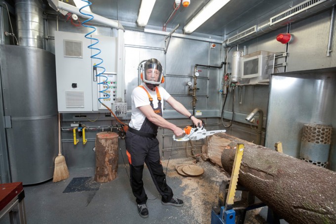 Режущая гарнитура также подвергается тестированию. STIHL имеет в общей сложности 84 различных типа цепей в ассортименте своей продукции.