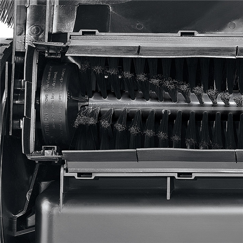 Две дисковые щетки поднимают грязь и перемещают ее прямо в находящуюся за ними емкость. Выступая с боков, они гарантируют, что вдоль стен и бордюров также не останется ни соринки. Маскимальный результат достигается при использовании в дополнение к дисковым щеткам подметального валика. Он справится с оставшимся мелким сором, таким как песок.