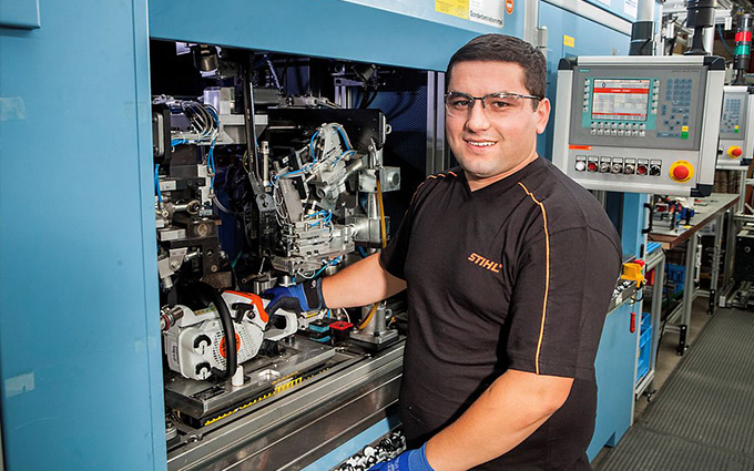 Многие компоненты бензоинструментов Штиль выполнены из полимерных материалов: начиная от корпуса и рукоятки и заканчивая мельчайшими деталями. Поэтому компания Stihl сама производит примерно 75 % необходимого количества деталей. Только так возможно предложить клиентам то качество, на которое они рассчитывают. При этом специалисты стараются подобрать подходящий материал для каждой области применения и в результате используется почти 50 различных материалов.