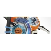 Четырёхканальная технология STIHL В четырех перепускных каналах цилиндра воздушно-топливная смесь перед воспламенением завихряется, в результате чего оптимально происходит процесс сжигания топлива и заметно повышается КПД двигателя. Как следствие, падает расход топлива и увеличивается крутящий момент в широком диапазоне оборотов.