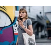 100% хлопок (стандарт OkoTex), размер 38*42 см, длинная лямка для ношения через плечо, двухсторонний принт с логотипом STIHL на фоне древесного круга.